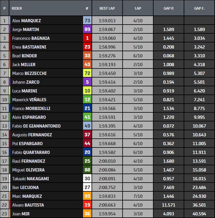 Ο Αγώνας Σπριντ του GP Μαλαισίας ήταν η ευκαιρία του Alex Marquez της Gresini Ducati να δείξει την ταχύτητα και την αποφασιστικότητά του και να πάρει τη νίκη, αφήνοντας πίσω του τους διεκδικητές του πρωταθλήματος. Ο Jorge Martin της Pramac τερμάτισε στη 2η θέση και ο Pecco Bagnaia της εργοστασιακής Ducati χρειάστηκε τη βοήθεια του ομόσταβλού του, Enea Bastianini, για να πάρει την 3η θέση.
